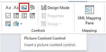 Bước 4: Trong nhóm Controls, chọn biểu tượng Picture Content Control. Hình ảnh sẽ được đóng khung và khóa tại vị trí hiện tại.